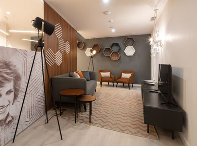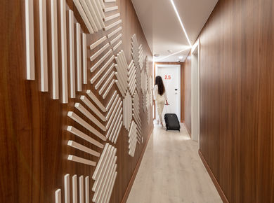 Não existirem mais de dois quartos iguais, todo o mobiliário selecionado, baseou-se principalmente na utilização de cores quentes e vibrantes juntamente com o uso de madeiras, realçando a simplicidade e elegância conseguida pela iluminação ao mesmo tempo que proporciona um equilíbrio entre intensidade e sobriedade para um ambiente confortável, cómodo e requintado.